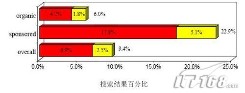 各搜索引擎在赞助商链接搜索结果上的安全性差异最大。Ask 的危险站点为 4.1%,而 Yahoo! 则有 9.0%。因此,用户在 Yahoo! 中点击广告后遭遇危险站点的几率是在 Ask 中的两倍。这些差异说明了搜索引擎对它们所推广的站点的控制力度。尽管搜索引擎可以寻求其他方法制止肆虐的可疑广告,但他们也可以制定并实施严格的编辑策略,将恶意广告拒之门外。遗憾地是,目前的指南主要是为确保广告内容的恰当,而不是网站的安全性。如果目标网页的质量与网站安全性有关,那么 Google 对目标网页进行的评估或许有助于过滤出危险的广告商。然而,各搜索引擎竟连最臭名昭著、传播最广泛的诈骗广告都无法阻止,着实令我们吃惊,这有可能是搜索引擎出于商业目标的考虑。禁止恶意广告会减少搜索引擎的收入,因为出价购买广告位的广告商少了。因此各搜索引擎还是极力想留住这些广告客户,尽管他们令人厌恶。