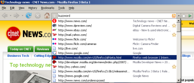 Firefox 3的地址栏可以自动显示先前访问过的链接地址及其网页名称。