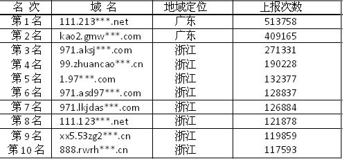 如上图所示,在超级巡警团队统计的2008上半年十大恶意域名列表中,就有80%的恶意域名的IP地址是指向浙江省的。列表如下: