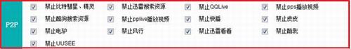 一键禁止PPS、QQLIVE、皮皮、风行、电驴以及迅雷搜索资源等主流P2P应用,避免P2P应用软件占用网络带宽,保障访问主要应用流畅和高效。