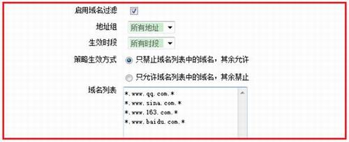 通过最简单的方法,添加需要访问的网站(域名过滤白名单)或者导入禁止的站点(域名过滤黑名单),并且还提供了分不同用户组和时间段的个性化应用支持,配置简单又方便。