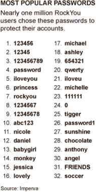 Imperva对3200万个上个月被黑客盗取的密码进行了分析,结果“123456”是网民使用最频繁的密码,所占比例为1%,其次是“12345”和“123456789”。