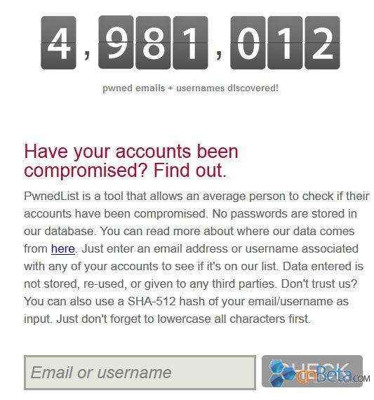 您可以简单地输入用户名和电子邮件地址,如果发现有泄漏的状况不需恐慌,只要改变密码和登录凭据即可,目前该数据库已经有数十万的用户登录凭据,但这些数据除了用于向个人公开外不会授予任何第三方。