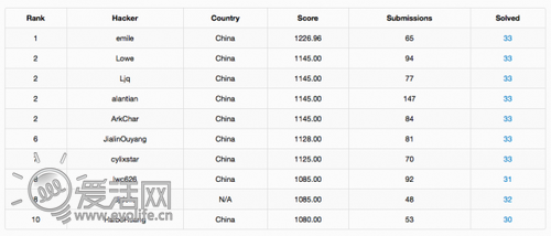 根Interview Street的统计,解决问题最多,水平最高的10名黑客中,有9名来自中国,还有一名国籍不明。如果不算并列第8名的国籍不明用户的话,第11名的美国用户ralekseenkov是非中国国籍用户中排名最靠前的一位。这说明什么问题呢?Interview Street认为,编程功力考研的是基本的数学和逻辑功底,这至少说明美欧等国的程序员理工科教育水平已经不及我国,这甚至令老外担心,中国已经在黑客技术上超越各个传统IT强国。当然,小编觉得不排除是当年蓝翔的原班人马已经毕业了……'