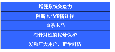从前面的分析可知,为了有效保护网上帐号的安全,仅仅依靠查杀木马是不够的,而是需要多层次全方位的安全保护。通过杀毒软件和其他安全软件的配合使用,可以达到更好的帐号保护效果。