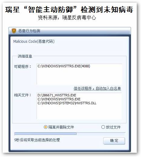 为了解决这一问题,瑞星杀毒软件采用了病毒的家族特征判别技术,有效的提高了行为分析的准确率。