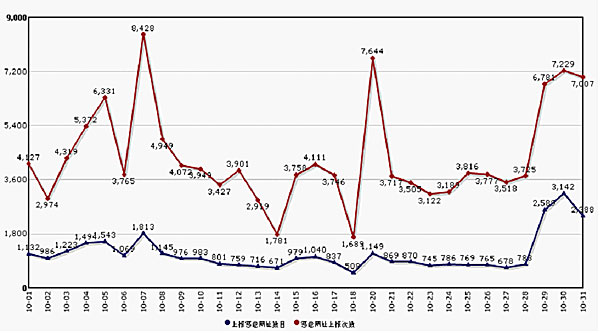 根据瑞星杀毒软件及“云安全”客户端上报的数据,2008年1月至10月,全国约有8100多万台电脑(包含企业用户)曾经被病毒感染,其中通过网页挂马方式被感染的超过90%。2008年10月份,瑞星对1万台上网电脑的抽样调查标明,这些电脑每天遇到的挂马网站,高峰期达到8428个,最低也有1689个,去除单台电脑访问多个挂马网站的情况,每天平均有30%的网民访问过挂马网站(注2),中国大陆地区已经成为全球盗号木马最猖獗的地区之一。