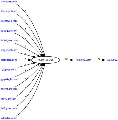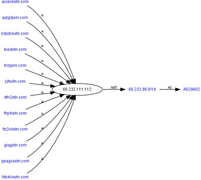 利用bootkit感染用户的服务器位置 (从左到右分别为:域名,服务器地址,服务器所在的子网,自治系统)