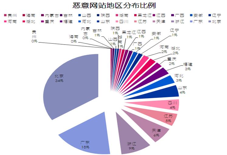 注:本图数据包含了钓鱼网站、诈骗网站、木马网站的总体数据,因此称为“恶意网站地区分布”。