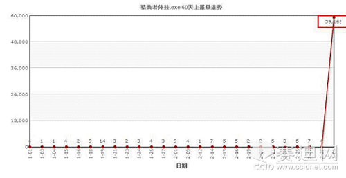2009年3月2日,瑞星“云安全”系统截获的数据表明,网游玩家中流行的“猎杀者外挂”程序被黑客挂马,截至当天17时为止,瑞星已拦截到59169人次网民访问该带毒网页。