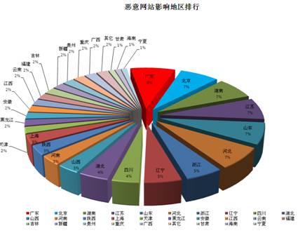 2009年上半年,在各省疫情方面,广东省以8%的数量领先,北京、山东、湖南、江苏等省市紧随其后。从瑞星“云安全”统计数据来看,各省网民受恶意网木马网站几乎没有差距,上网计算机保有量是疫情地区差别最重要的原因。