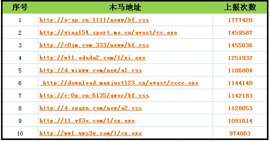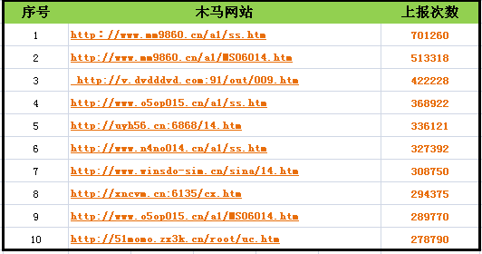 排行首位的木马网站被拦截的次数70万次;第二名的木马网站被拦截次数为51万余次;第十名的拦截次数也达到27万余次。