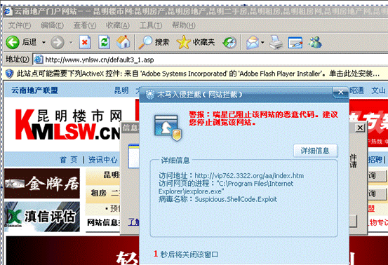 7月7日,瑞星公司发布橙色安全警报,微软视频控件(Microsoft Video ActiveX Control)漏洞导致的挂马网站攻击大幅增加,7月5日凌晨瑞星“云安全”系统首次监控到利用该漏洞的攻击代码出现,随后的5日6日短短两天内,监测到130万用户遭到利用该漏洞的攻击。