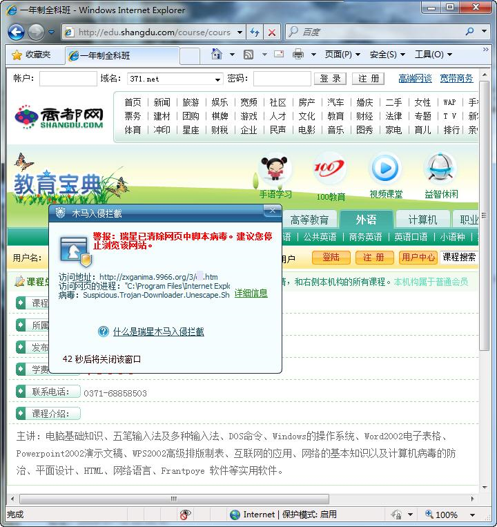 被植入木马的网页为极品时刻表内嵌的广告网页,用户在使用“查询”功能之后,该软件会自动打开那个被挂马的网页。该网页中使用了多个常用软件的流行漏洞,如果用户没有做好相应的防护,很容易中毒。