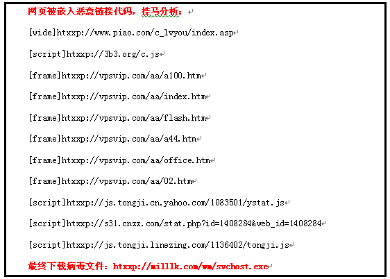 近期,对瑞星“云安全”截获的恶意网址进行分析,发现恶意链接为:“http://3b3.org/c.js”极为猖獗,分析其js脚本程序,其中有针对gov.cn、edu.cn这两个域名判断,如果是gov.cn和edu.cn就不嵌入挂马网址,即对政府和教育类域名屏蔽挂马网址,可见黑客团伙的网页挂马技术已日趋智能化和产业化。