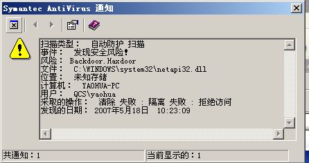 在该杀毒软件报警后,不要重启动系统,会造成无法启动。