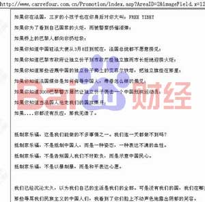 百度财经4月17日讯 17日下午14:30,编辑在浏览家乐福中国主页时,家乐福中国主页的促销页面突然出现号召“抵制家乐福”的长段文字。