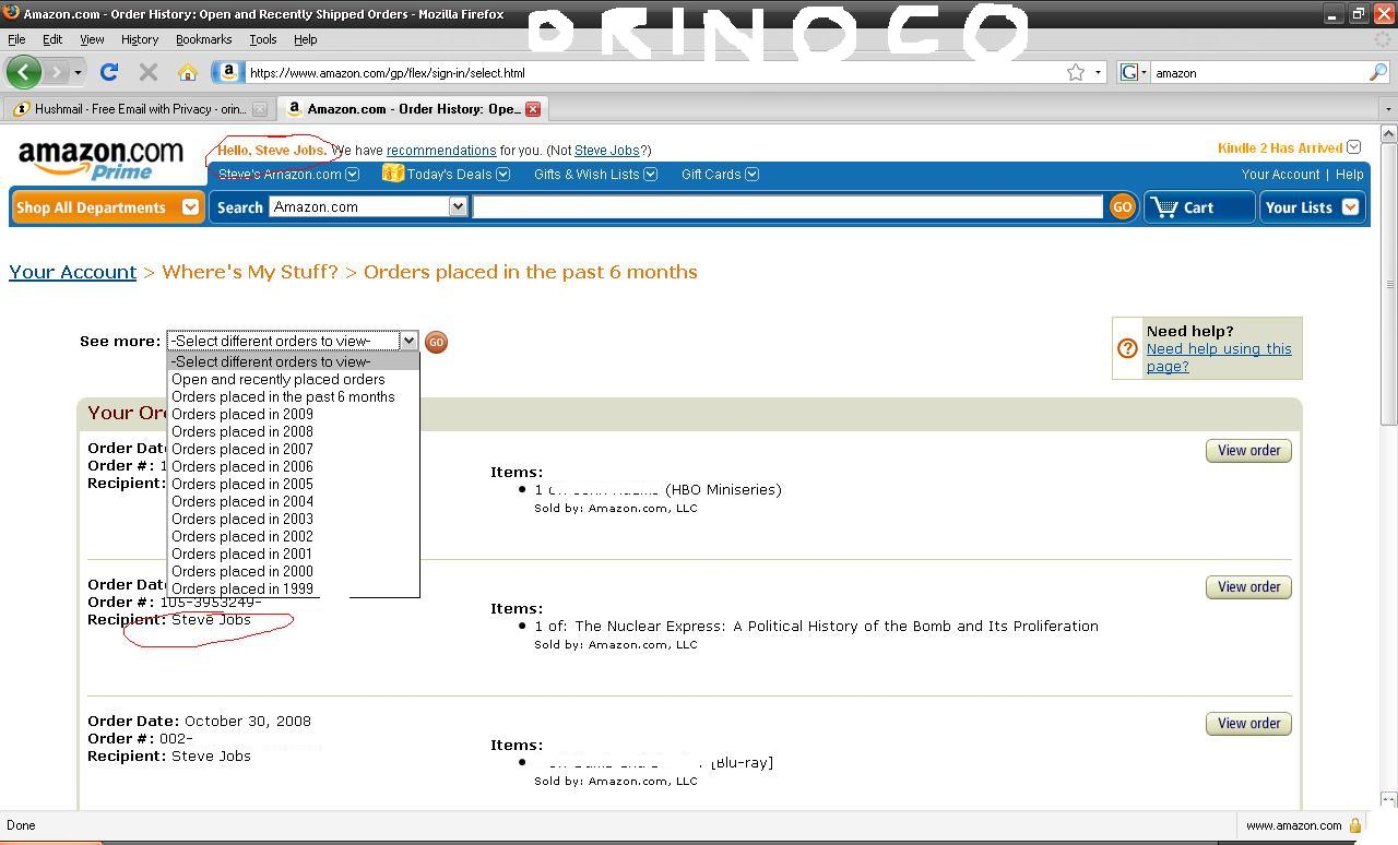 一名黑客日前宣称,他已经破解了苹果CEO乔布斯的亚马逊帐号,他希望将乔布斯的私人信息出售给记者。这名黑客自称“orin0co”,他表示,他通过钓鱼的方式获取了乔布斯在亚马逊上的账号密码。历史记录显示,乔布斯过去10年中在亚马逊上购买了2万件商品。这名黑客同时表示,他已掌握了全部信息,但是并没有滥用这些信息。此外,他不会以“低价”出售这些信息。由于乔布斯一直对私生活非常保密,而近期还由于健康问题暂时离开苹果,因此如果这些信息是真实的,那么对记者来说将会非常有价值。