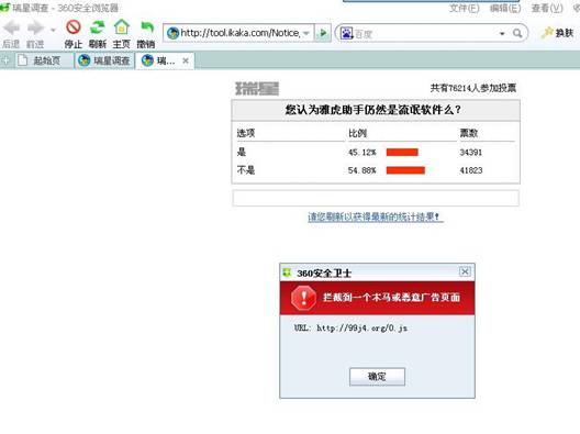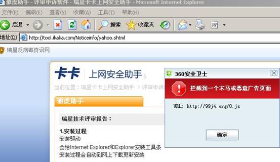 图片说明:瑞星官方网站多个页面被黑客植入木马。非360安全卫士用户浏览可能被盗号。
