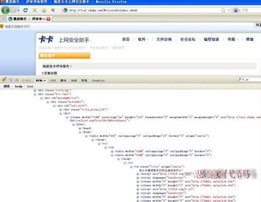 图片说明:瑞星官网被挂马网页中包含的恶意代码