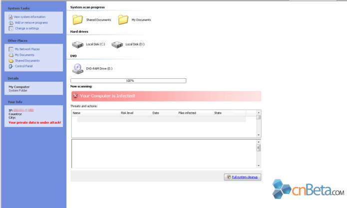 据悉,制作人透过互联网搜索引擎向查找史威兹新闻的网民发动攻击,系统会自动弹出警告的标语,表示用户的计算机已遭受病毒感染,为保安全应立即安装一只名为“Total Security” 的免费防毒软件,以进行扫描及找出系统内的恶意编码软件。