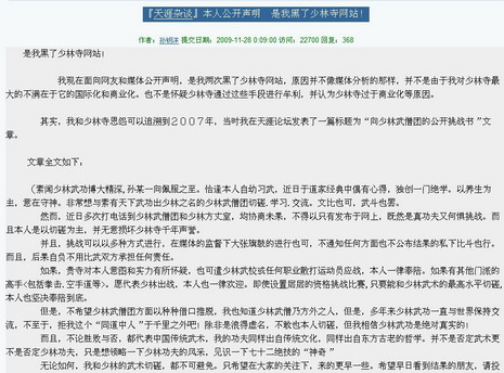 而这一黑客自曝帖在“猫扑”上也引发了网友的极大热情。网友观点交锋激烈。有支持也有指责这位黑客的,一位名为“snowman”网友严厉斥责道,“没事干黑少林寺干什么?”