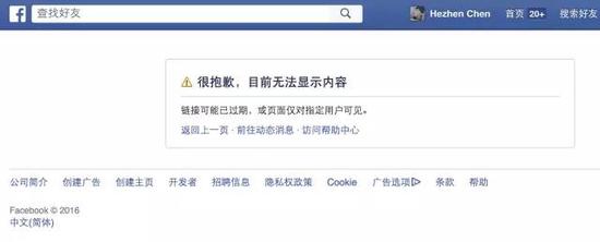 点黑客页面附带的超链接处,跳转至Facebook页面后显示页面设有浏览权限,无法显示。